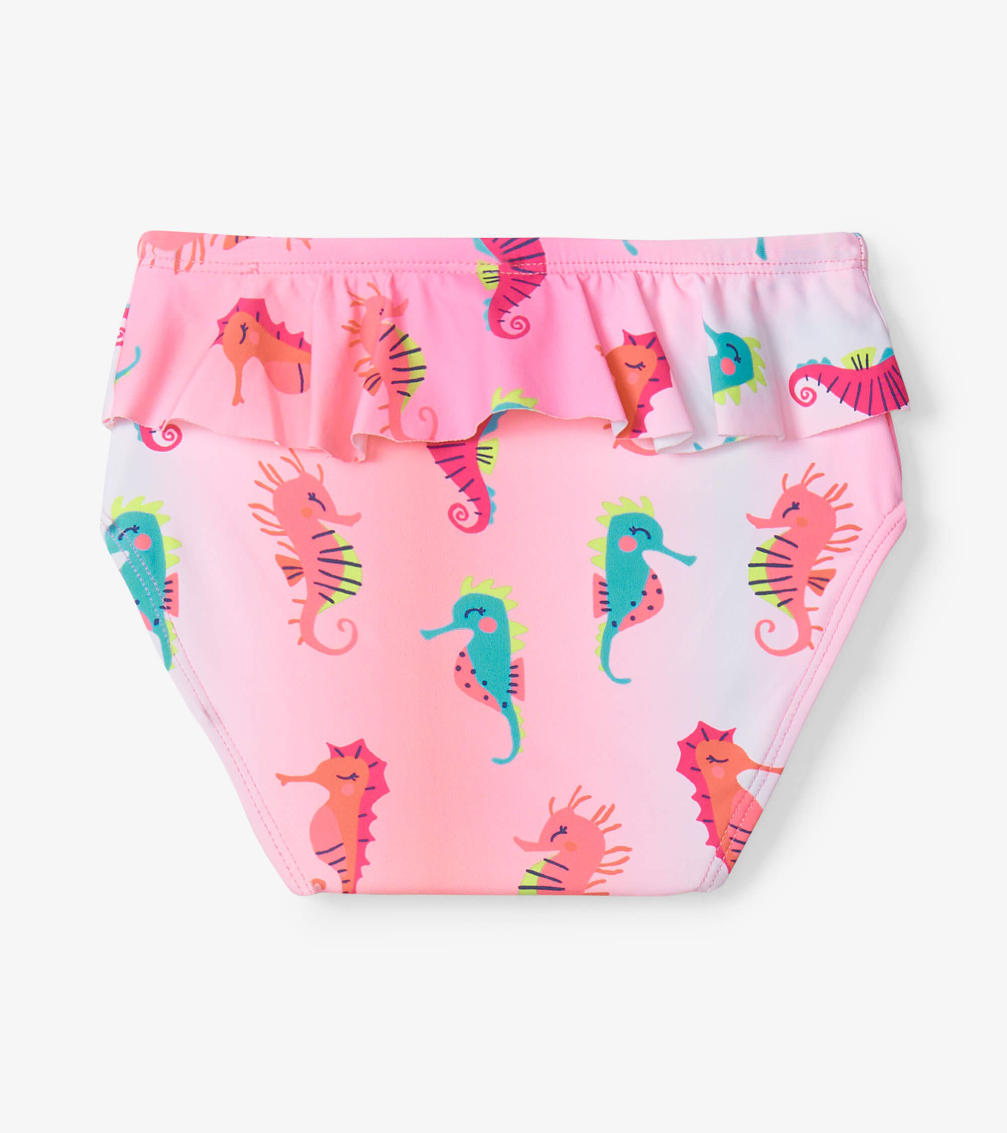The Little Sea Horse Baby Rashie Set from Hatley with its endearing print and adorable ruffles, this long sleeve rashie is the perfect choice for days at the beach! Featuring a UPF 50+ sun protection, and a snap closure at the inseam (hello, easy nappy changes).