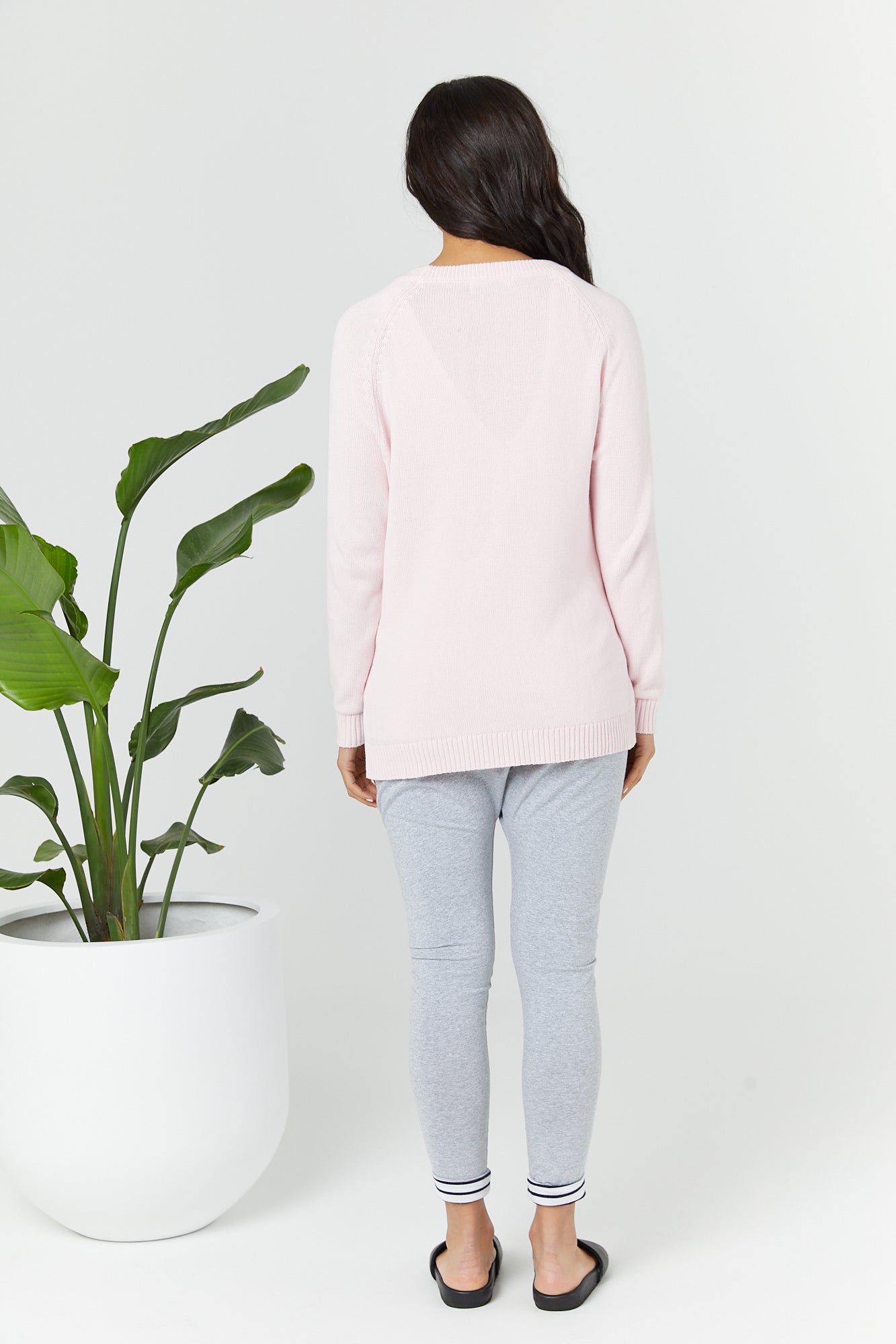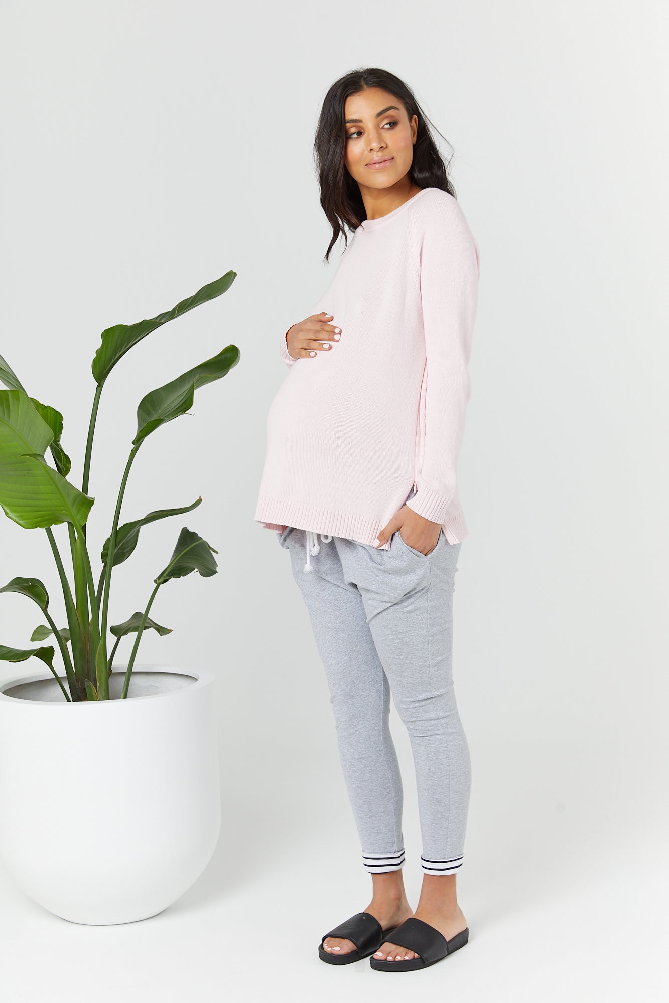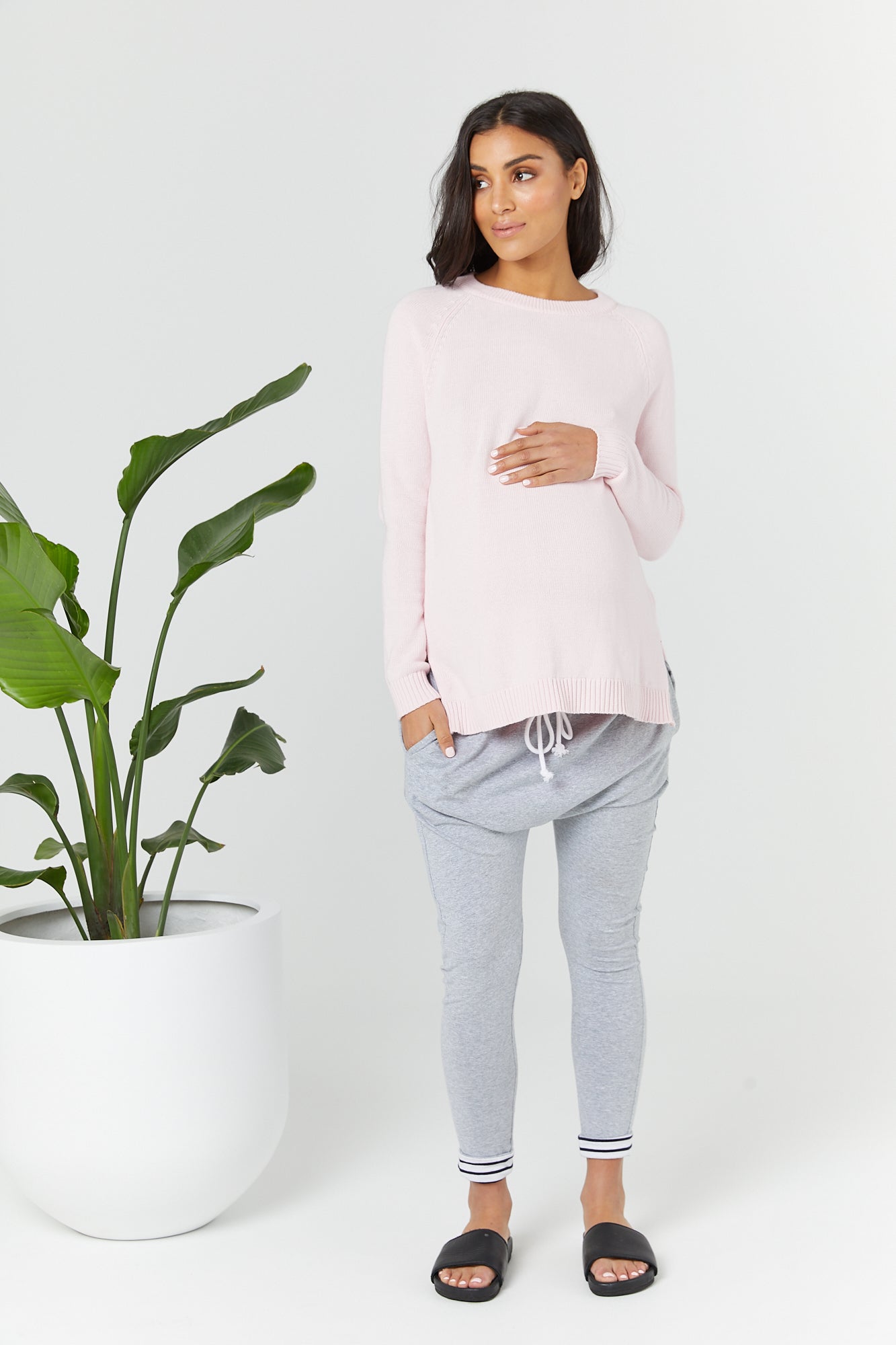 It is a relaxed fit for pure comfort on a full term bump and or a post baby tummy. It is created from mid to lightweight 100% cotton knit. It has a great natural stretch and is a jumper that is simplistic and versatile.